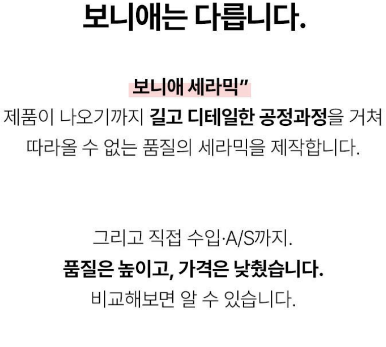 또 하나는 가격대비 퀄리티! 직접 수입한 고급 세라믹을 사용했다는데, 진짜로 고급 브랜드 못지않은 느낌이에요. 관리도 간편하고, 실용성도 있어서 오래오래 쓸 수 있을 것 같아요.