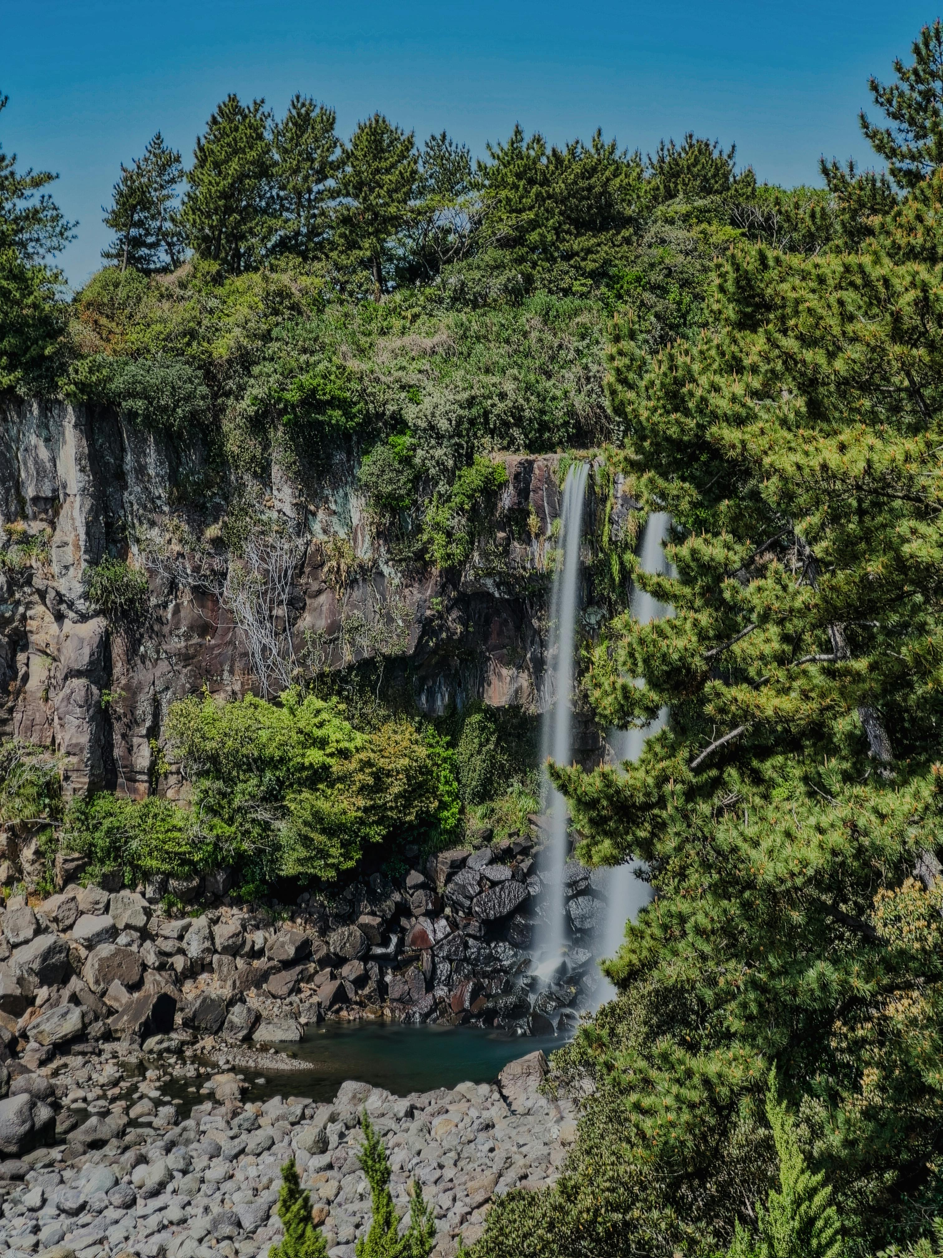 제주 3대 폭포 중 하나인 천지연 폭포는 자연 그대로의 신비로움을 간직한 명소입니다. 폭포 뒤로 무지개가 보이는 날도 있어 운이 좋다면 특별한 풍경을 감상할 수 있습니다.