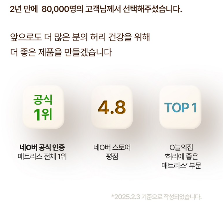 1. A: "허리 협착증으로 고생했는데, 수면밀도 매트리스 사용 후 허리 뻐근함이 줄었습니다. 뒤척임도 줄고 깊은 잠을 자게 되었어요!"